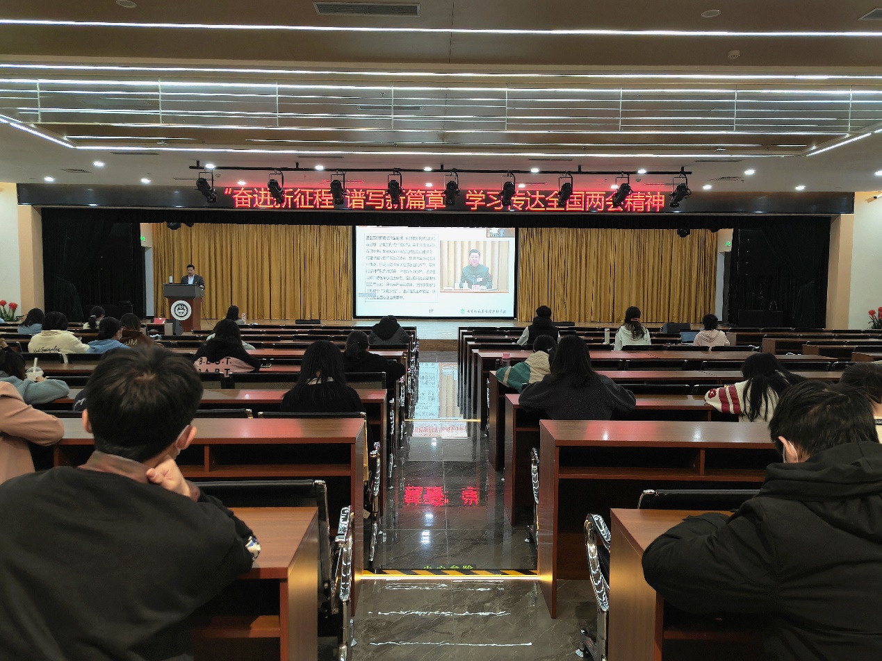 3月25日中午,澳洲5网页版页面登录_澳洲5(中国)在地下报告厅通过线上线下相结合的方式举办了学习传达全国两会精神主题教育党课。澳洲5网页版页面登录_澳洲5(中国)党委安道彩书记以“奋进新征程 谱写新篇章”为主题,为学院学生支部全体党员和共青团员上了一堂生动形象、意义深刻的党课。党课由学生党支部书记史纪元同学主持。线上259人,线下95名党员、团员参加此次学习。