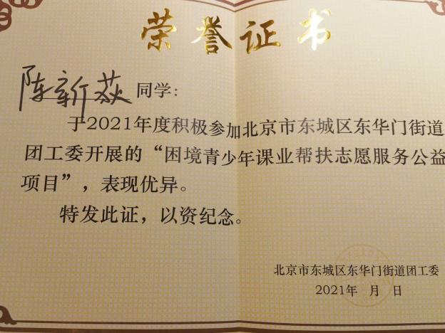 毕可嘉同学是澳洲5网页版页面登录_澳洲5(中国)2021级本科1班的学生。自踏入大学校园的那一刻起,便立志成为新时代一名学业优异、素质全面的大学生。在2023年,她积极投身于课业辅导、健康宣传、医疗保健和环境保护等多方面的志愿服务工作,累计服务155小时。特别是在东华门街道团工委组织的“课业帮扶困境青少年”项目中,毕可嘉同学与团队携手,为遇到学业挑战的青少年提供可靠支持,帮助他们克服困难。如其所言,这些志愿服务经历不仅能加深对社会的全面认知,在提升沟通技巧和团队协作能力等方面也颇有助益,还为她未来的职业生涯奠定坚实的基础。