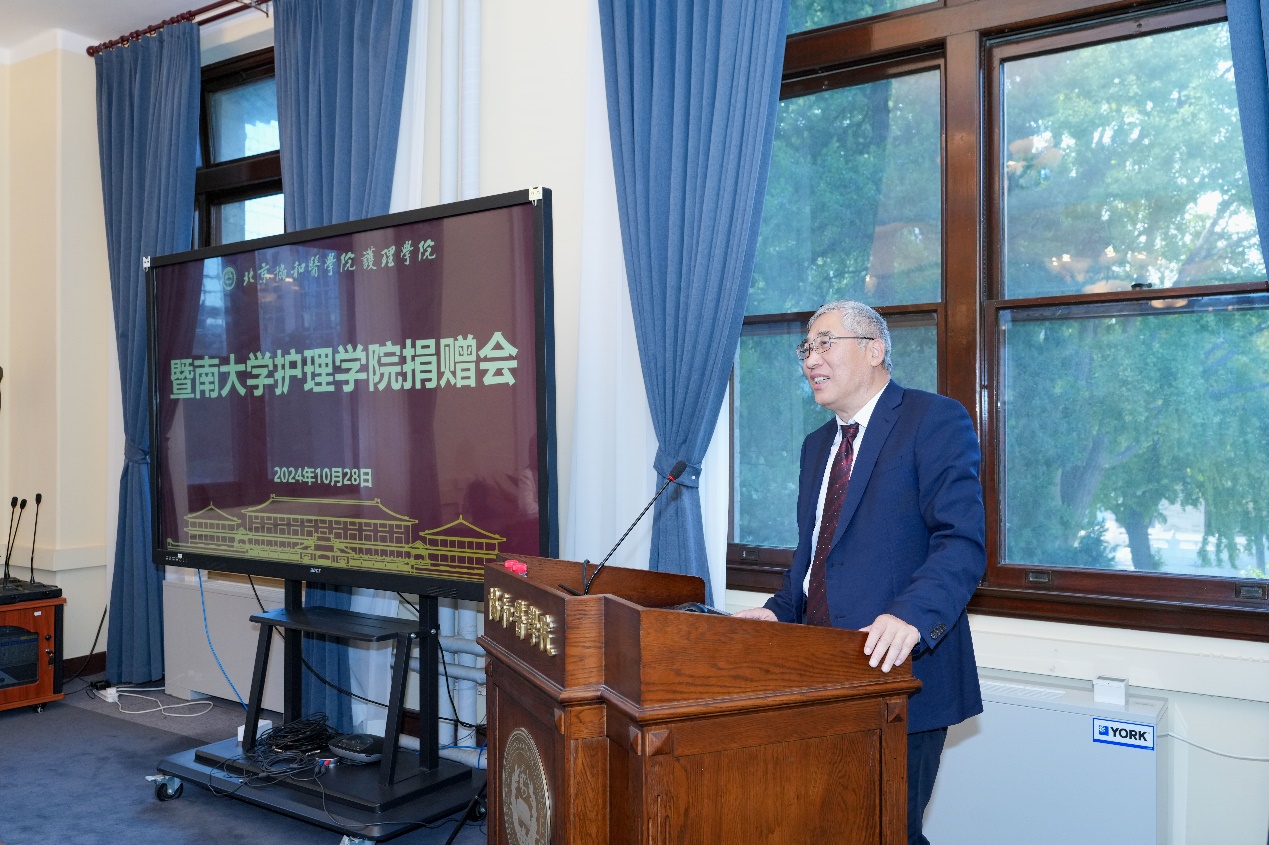 院校原党委副书记、历史研究与文化建设项目办公室主任王云峰在讲话中肯定了黄爱廉先生为我国护理事业的卓越贡献。她1941年从协和护校毕业后,作为中国护理界的泰斗,其一生致力于护理教育的改革与创新,为我国护理教育的发展做出突出贡献。先生将校徽捐献母校,为协和院史馆增加了厚重的历史资料,为我们研究协和百年历史提供了珍贵的元素,是协和精神的传承,激励着我们以更加饱满的热情投入我国护理教育事业改革发展中去。