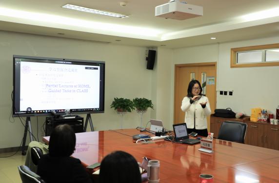 马昱春教授结合自身实践经历,深入浅出地介绍了数字化时代混合式教学的理念和模式、人工智能在教学领域的可能性,通过演示AI智能出题等技术,让教师们直观感受到AI为教学工作带来的便捷,通过雨课堂与听众互动交流,共同探讨教学设计中的难点和突破口,不断改善教学效果。