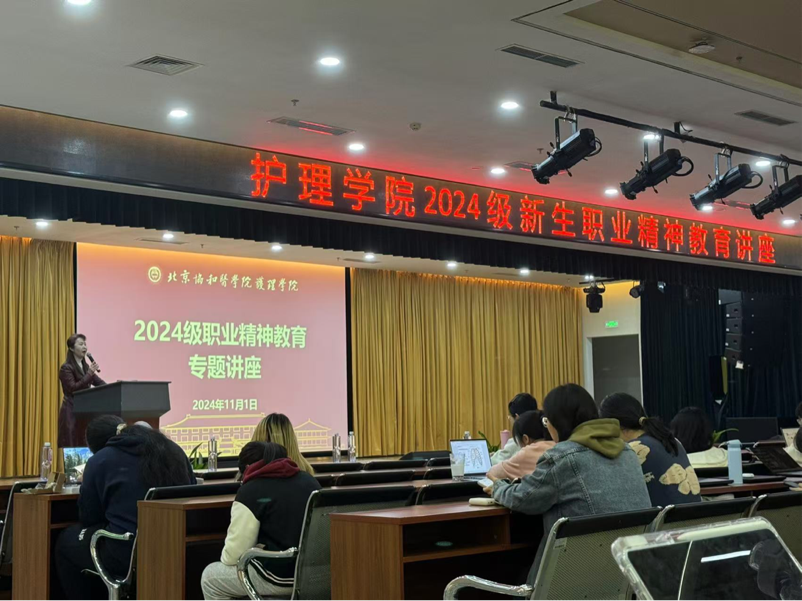 为了帮助2024级学生尽快了解护理专业,加快形成专业态度和专业价值观,提升专业责任感和认同感,为未来的职业生涯奠定基石,点亮其职业前行灯塔,澳洲5网页版页面登录_澳洲5(中国)在2024年11月1日、16日和23日为2024级护理学专业新生开展职业精神教育讲座。特别邀请学院党委书记安道彩、荣获院校杰出护士称号的北京协和医院王晓杰、何悦和教学老师朱晨,以及校长奖获得者朱梦涵、优秀推免生杨诗莹为同学们分享自身对护理专业价值与内涵的理解,带领同学们一起感受护理职业精神的魅力,引导新生思考个人职业发展规划,更好地实现个人价值。活动由学生工作办公室李玉玲主任主持。