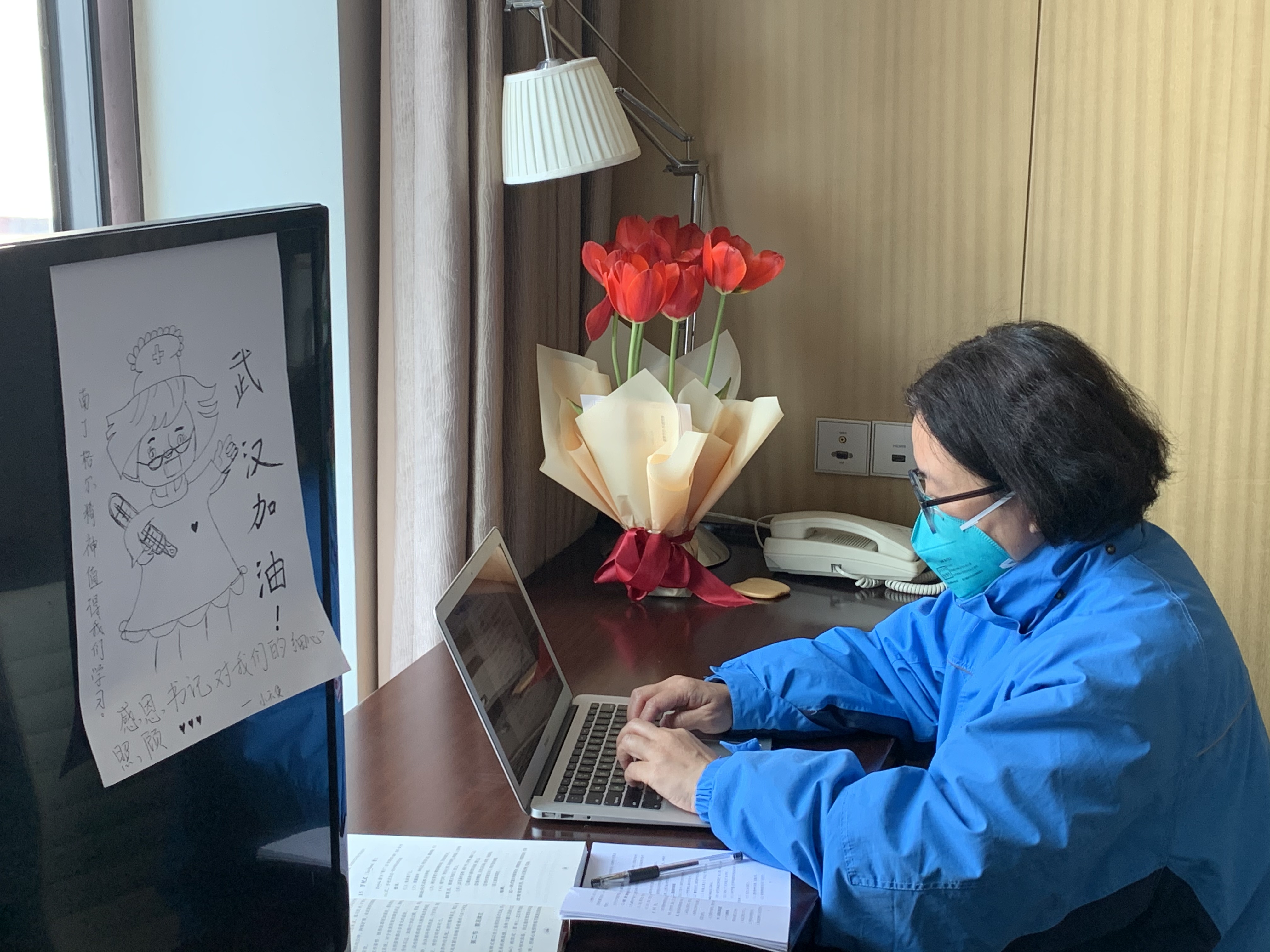 李红是忙碌的,为队员提供的却是“大白式”的服务。据队员谢兰璟和郑丽兵介绍,进驻方舱医院的前一周,李红只要没外出开会,每天坚持亲自接送四个班次的队员往返医院和驻地,看着每一位队员出舱及时消毒,清洗面部、脖子、鼻孔、口腔等部位。那些天,零散的睡眠时间加起来日均不足两小时。记者得知私下大家都喊李红“李妈妈”。“上过A班(早班)的队员们都喝过李妈妈熬的参水,为大家开启元气满满的一天。”每天凌晨的4点多,李红会将亲手煮好的参汤用保温壶装好,拿到一楼大厅,一杯杯端到队员面前。“早上雷打不动两个鸡蛋,李妈妈‘盯着’我们吃,她说吃好吃饱才有力气‘打战’。”一位舱内志愿者出院时,还给“李妈妈”发了短信,表达不舍之情。