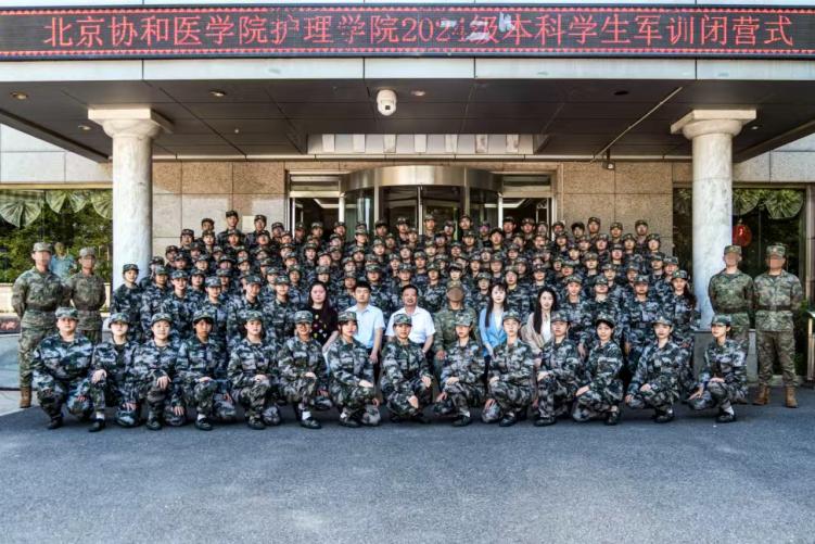 训练期间,同学们每日清晨身着迷彩作训服整齐列队,以挺拔军姿迎接全天训练。从站军姿、踢正步到分列式协同,每一个动作都凝聚汗水与坚持。阳光炙烤,汗水浸透衣衫,仍身姿笔挺、目光坚毅;夜幕降临,“听党指挥、能打胜仗、作风优良”的口号依旧响彻训练场,展现出协和护理学子昂扬向上的精神风貌。