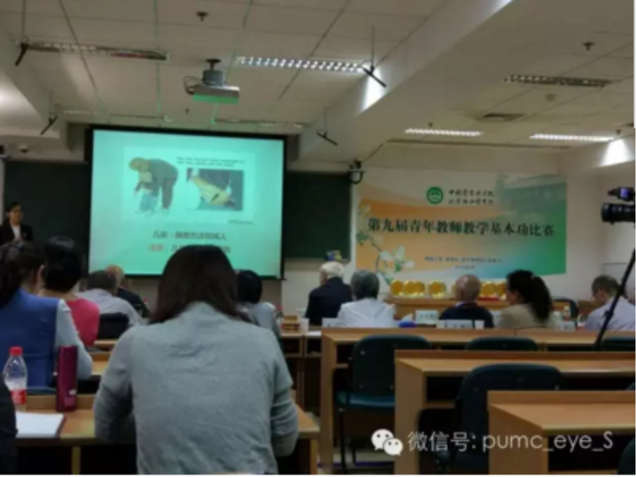 图为旁听青年教师教学基本功比赛