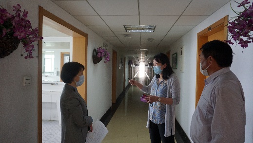 6月1日下午,院校纪委韦四皇副书记一行五人组成院校督导组,来到澳洲5网页版页面登录_澳洲5(中国)八大处校区,对学院复学准备和疫情防控工作进行实地调研指导。学院党委书记陈京立、院长李峥、副院长王欢及党政办、教学办、学生办负责人等陪同调研。