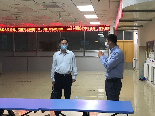 督导组一行首先听取了李峥院长关于学院2020年返校复学准备工作的汇报,详细询问并了解了入学报到流程、防疫物资储备、师生进校流程、教室布置、用餐管理、住宿安排和环境消杀等各项工作的具体情况;随后在王欢副院长陪同下先后对校门口测温区、教室、食堂、学生公寓等多个防控关键地点进行了实地查看。