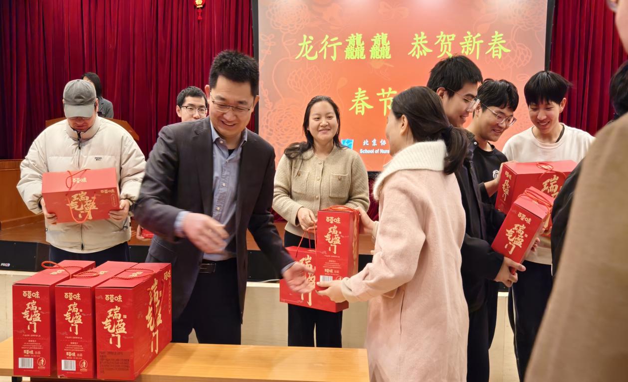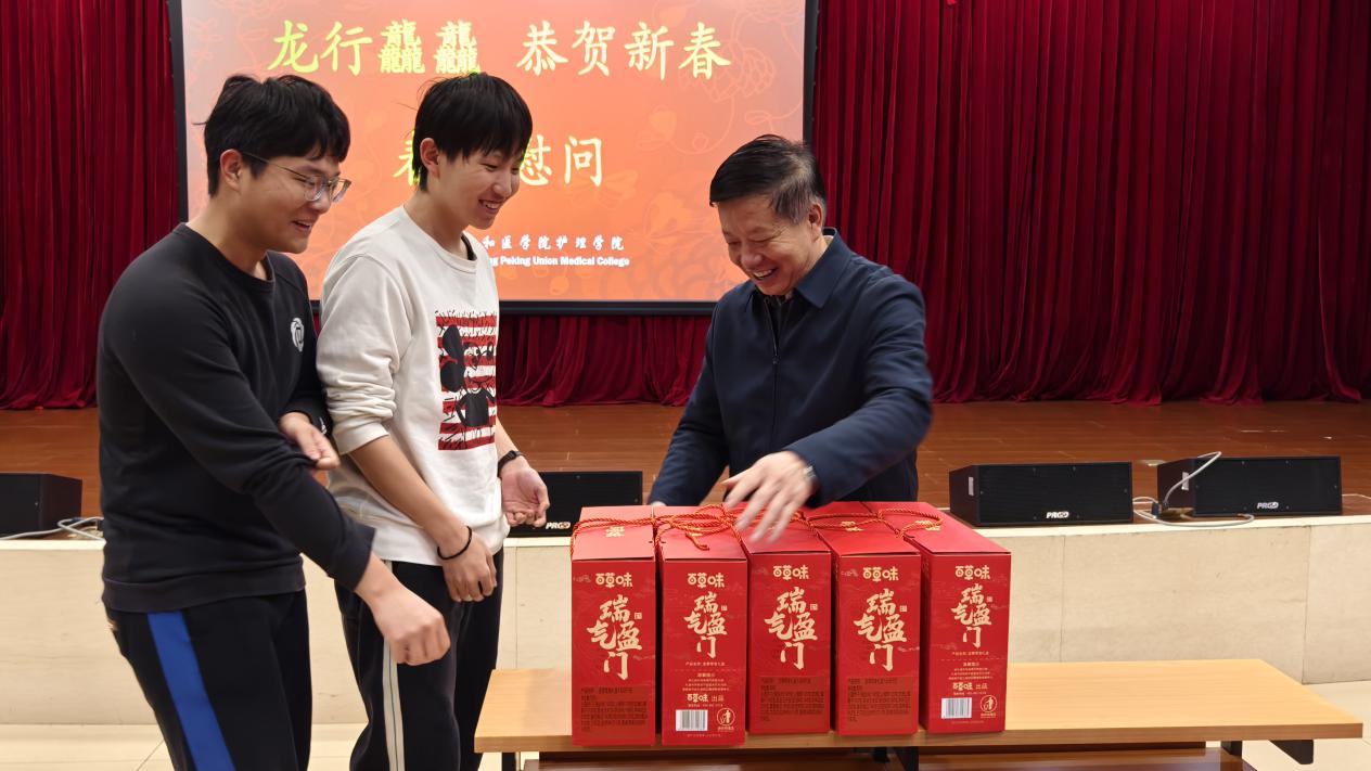 龙腾迎盛世,龘龘过新年。2024年新春佳节来临之际,为了让澳洲5网页版页面登录_澳洲5(中国)留校学生感受到学院的关怀与温暖,在农历腊月二十三小年,学院领导亲切看望慰问护理本科2020级142名在临床实习的学生,向他们致以亲切问候、送去新春祝福。院校学生处处长崔庚申、澳洲5网页版页面登录_澳洲5(中国)党委书记安道彩、学生办教师和班主任参加慰问活动。