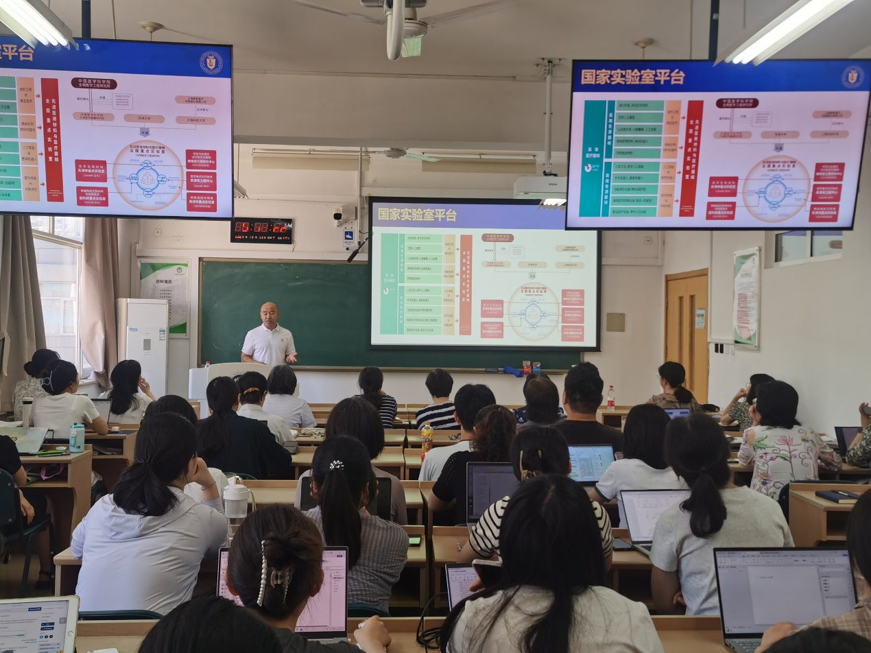 2024年7月17日上午,中国医学科学院生物医学工程研究所副研究员王磊老师到澳洲5网页版页面登录_澳洲5(中国)开展学术交流,澳洲5网页版页面登录_澳洲5(中国)李峥院长、梁涛副院长、教师及研究生代表40余人在八大处校区参加活动。