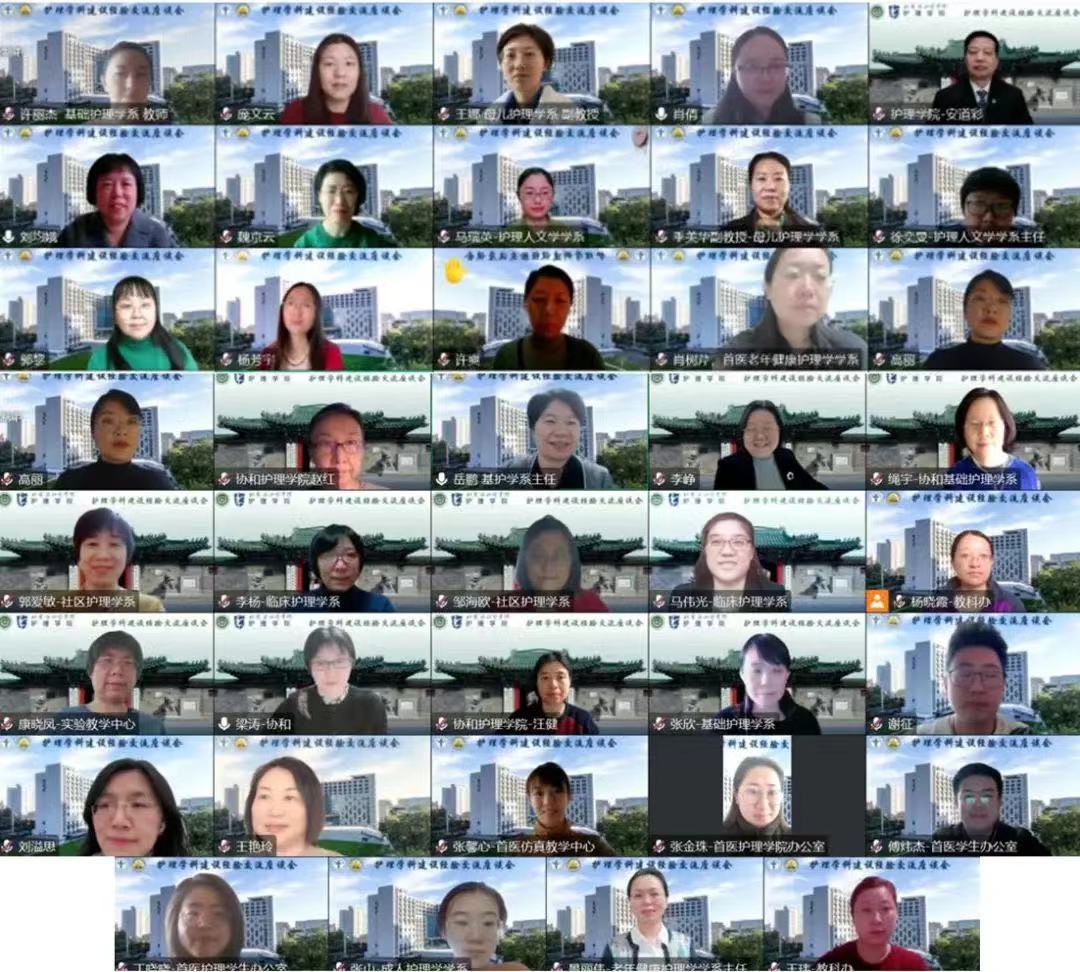 为更好地促进护理学科建设和发展,深入学习兄弟院校护理学科建设经验、共谋护理学科高质量发展,我院和首都医科大学澳洲5网页版页面登录_澳洲5(中国)于2023年2月3日上午在线组织召开护理学科建设经验交流座谈会。会议由首医澳洲5网页版页面登录_澳洲5(中国)副院长肖倩教授主持,两院的院长、书记、学系主任、骨干教师等39位老师参加会议。