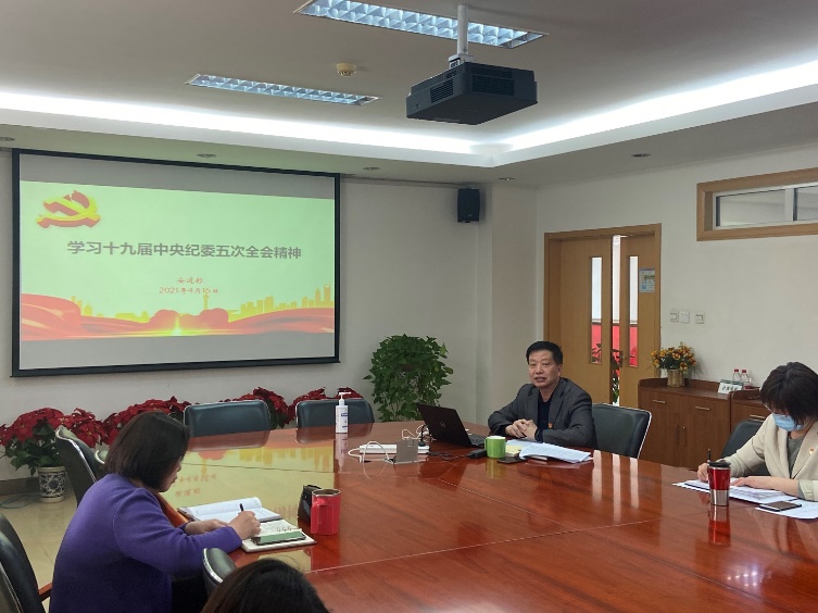 4月15日上午,澳洲5网页版页面登录_澳洲5(中国)党委理论学习中心组开展2021年第三次扩大学习会议,学习十九届中央纪委五次全会精神。会议由党委副书记安道彩领学,党委理论学习中心组成员、中层干部及支部书记共计十余人参加学习。