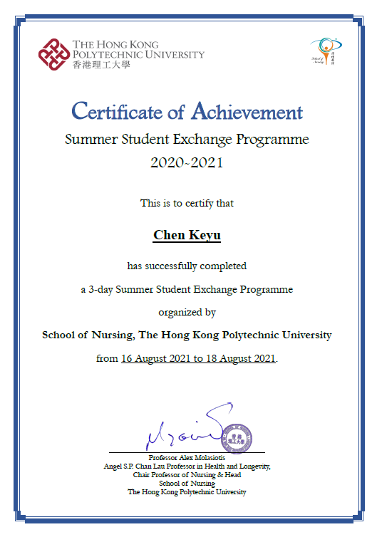 学生通过在线视频授课的方式,锻炼了英文口语交流能力,学习国内外先进护理学科发展经验,开拓了国际视野,对本次国际交流活动给予了极高的好评。同时,与会同学参与课程后收到了由香港理工大学澳洲5网页版页面登录_澳洲5(中国)颁发的参与证书。