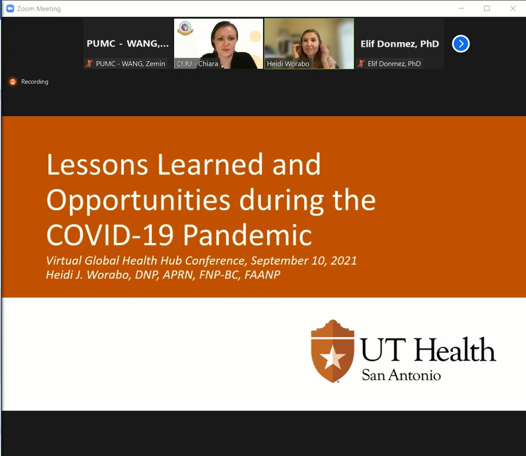 会议邀请了多位护理专业的教育工作者和学者,包括世界卫生组织东南亚地区护理技术官员AiTanimizu,泰国清迈大学的Wanchai Lertwatthanawilat教授,巴西巴拉纳联邦大学的LucianaS.Goncalves教授,哥伦比亚国立大学的DanielArturoGuerrero,土耳其健康科学大学的ElifDONMEZ教授,美国德克萨斯大学圣安东尼奥健康科学中心的HeidiJ.Worabo教授分别分享了各自国家和地区在新冠肺炎期间护理教育受到的影响和冲击,以及应对的经验和方法。与会学生普遍表示通过本次交流活动,提升了口语交流能力,开拓了国际视野,增加了对新冠疫情对国际上护理教育影响的认知。